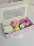 Розмір коробки 20см.х10см.х5см. Приблизна вага 190грамУ наборі 5 квіточок мікс Ручна робота. Точне повторення композиції неможливе!