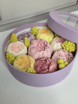 Коробка діаметр 20 см висота 6см. Приблизна вага 445грам У наборі квіти півонії. Ручна робота. Точне повторення композиції неможливе!