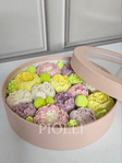 Коробка діаметр 25см. висота 6см. Приблизна вага 740 грам У наборі квіти півонії. Ручна робота. Точне повторення композиції неможливе!