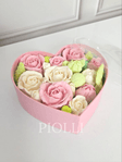 Коробка має прозору кришку . Діаметр 17см. висота 6см. Приблизна вага 370 грамПриблизна вага 330грамУ наборі троянди та тюльпани. Ручна робота. Точне повторення композиції неможливе!