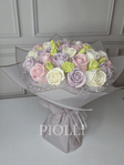 Квіткова шапка приблизно 33 см. Квіти - троянди.Додатково букет загортається у прозору плівку для квітів. Квіти - мікс.Ручна робота. Точне повторення композиції неможливе!Колір обгортки уточнюйте додатково. Всі букети видаються у сумках - переностках. Колір та дизайн сумочок в асортиметі та залежить від наявності.ПОШТОЮ саме букет НЕ ВІДПРАВЛЯЄМО!